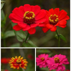 ジニア、昨年のこぼれ種から育ちました。 1枚目、葉っぱを虫に食べられても可愛い姿♡蕾から色んな姿を見せてくれて可愛いです♡