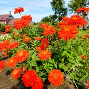 秋晴れのスッキリ晴れ渡った朝です。 最低温度、6℃。 この秋一番の冷え込みです。 百日草。 名前の通り、いえいえ、100日以上咲き続ける優れもの🥰 花壇を彩り続けてくれています。