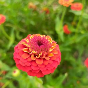 百日草 ダリア ガーベラ コキア 百日草がまだまだ元気だ 赤くなり出しているコキア また雨の予報☂️😨