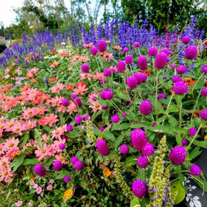 昨日の午後、市内を散歩途中に見かけた千日紅と百日草。