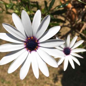 下の鉢植が買って来たオステオスペルマムで、隣に咲き始めているのが、ディモルホセカ、似てますねー。間違えそうです。そして、上の白い花が、ザィールバリエガーターと言う、オステオスペルマムの斑入りだそうで、私はオステオと違う種類だと思って買って来ました。ほんとに良く調べないと分かりませんねー。今きれいな花🌼🌸💐が、どんどん出て来ていて、見るたびに欲しくなってしまいます。(^∇^)