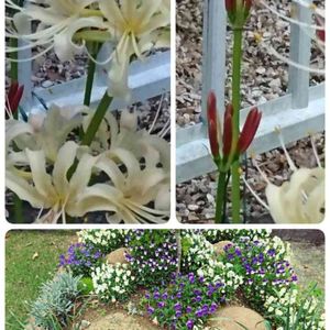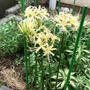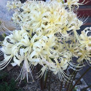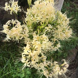 シロバナ曼珠沙華 🌱 シロバナ曼珠沙華は、赤花と黄色花の交雑種だそうで、ツボミはそうなんだと思わせる色! 小さい頃は、田んぼの周りに赤花がいっぱい咲いていました。 彼岸花は赤!と信じてました。 沖縄に行ったら、黄色花がいっぱい咲いていて、ビックリしました。 時が経って白も珍しくなくなりましたね✨
