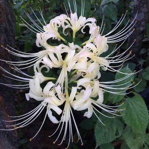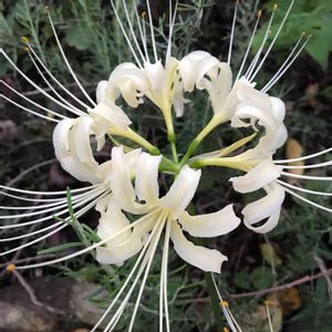 いただき物の白い彼岸花。 🐱の髭のようにシュッと伸びてカールしてる😊 キレイで可愛い💓 花言葉は『また会う日まで👋』『思うはあなた一人😚』ですって~❇