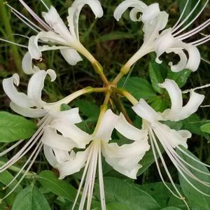 「 シロバナや 駅前、雑踏、パチンコ屋 、人混み 湿度、深呼吸」 シロバナマンジュシャゲ、満員電車の後、救いなのか、加齢を意識するか〜。うむ、花弁が、華麗ではある。