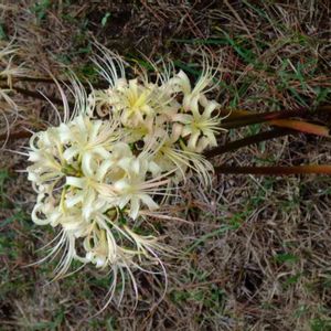 少しクリームがかった曼珠沙華が花水木の下で咲いてます😃