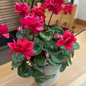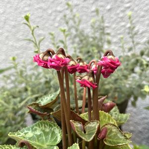 犬の散歩をしていたら、なんとご近所の方から八重咲きのミニシクラメンをいただきました😊 ご近所の方が車から荷下ろししてる時に挨拶したんだけど、持ってって〜って、今買ってきましたって感じじゃないのかな💦何鉢かありそうだったけど、変な時に声をかけちゃって申し訳ないわ。