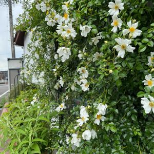 今日のお花 ノイバラ🌹 テリハノイバラです。 昨晩の雨で花がクタッとしています。ちょっと残念な写真です😅