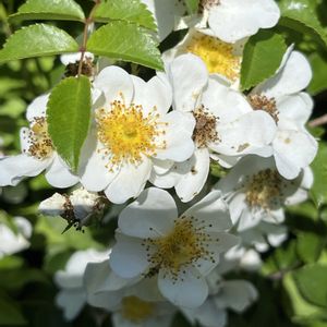 「テリハノイバラ」 系統→原種(Sp) 葉に艶が強い 咲き始めで遅咲き ノイバラより少し花は大きめです 浜寺公園バラ園 5/18