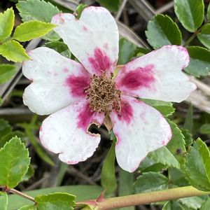 テリハノイバラ 白い花弁に赤い斑点があるものがあってビックリ😲 どれも蕊が萎れてるから、花が終りに近づくと赤い方が出てくるのですかね🤔 千葉県飯岡海岸(6/9)