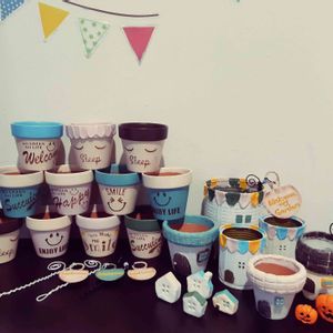 久しぶりの投稿です(*^-^) お盆明けから、こつこつと作っていたリメ缶&リメ鉢、ピックや小物たち⭐ 今日やっと仕上がりました~😆💕