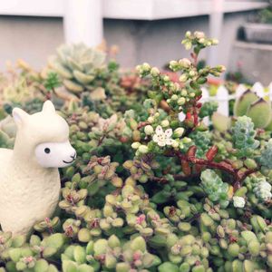 箱庭風に寄せ植え🎶 ちびーズリメ缶可愛い〜😍 レンガとか柵とか 可愛い小物置きたかったけど 無くて〜😭💦💦 軽石の小路でガマン🤣🤣🤣