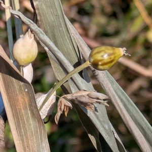 キツネノカミソリ Lycoris sanguinea Maxim. 柔らかなピンク色のナツズイセンに続いて、オレンジ色の花被片が印象的なリコリスが今日のGSの花に選ばれている🔶 雄しべの黄色い葯が目立けれど、オオキツネノカミソリと違って突き出ない🟡 おなじみ丁字着葯( ~˙˘˙)~ユラユラ~ 蕾のすぐ下で緑色に膨らんでいるのは子房で、受粉がうまくいくとさらに膨らんで、ボコボコとした塊に🟢 3倍体なら種は出来ないけれど、鱗茎で増えていくことが出来るから便利よね🖤 春先の葉は気に留めていないから、ある日突然(かのように)藪の中からニョキッと伸びて来て驚くことになる🟠