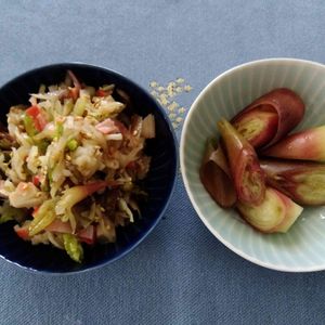 今週のぬか漬け🧑🍳 ミョウガのぬか漬けは爽やかな味わいに😊 細かく刻んで切り干し大根のサラダにも入れてみました。