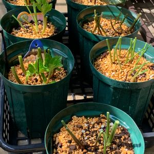 やり過ぎたかな💦 根っこが気になってチェックしたら 3鉢植え替えになりました🥰🙌🍵 右中央2鉢が5年目さん🪴 向こう3鉢が2年目さん🪴 手前の2鉢が開花株から夏越し🪴