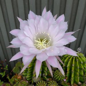 お花の記録🌸 旺盛丸 エキノプシス オキシゴナ🌵 記録的 猛暑の夏のお土産かな🔅🔆 初めて咲いたよ(*´艸`)🌸 嬉しくて再投稿失礼✨ 長ーく伸びた花茎の先に 掌ほどの大きな花が咲いた💖 夜に開いて翌日昼にはしぼむとか…… 思わず沢山撮影しちゃった (´>∀<`)ゝ 毛深い蕾ちゃんは前のpicにupしてます🎶
