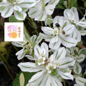 今日、2つめの投稿です。 🏷️白い水曜日♡ 🏷️白い貴婦人✨ ①〜③ ハツユキソウ 🏷️2のつく日は斑入りの日 遠くで見ても、寄って見ても、可愛らしい🤍 実が倒れている姿を見て、なんか見たことあるな、と。 やっぱり、タカトウダイと同じ、トウダイグサ科トウダイグサ属でした。 調べてみると、実ができない雄花だけの花序もあるようですね☺ 白い花弁4枚の花かと思ってたけど、これは花弁ではなく……。 抹茶色の蜜腺の付属体なのだそうです。 ④⑤ 大きくて綺麗な キアゲハ(たぶん♂)を見ました💛 カラミンサの蜜が美味しいんですね✨ (8月25日)