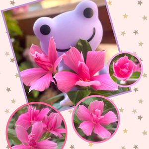 こんにちは🌞 お迎えしていた八重咲きニチニチソウ『サニープリンセス』🌸太陽に向かって光をいっぱい浴びています☀️ 私には無理だ〜😅💦 可愛らしいピンクのお姫様です🩷 今日は6日ですね〜🐸 🏷️6日はカエルの日 🏷️キャラクターピクルス 🏷️カエル仲間 🏷️人に優しく 🏷️コラージュ仲間達 🏷️日曜日のコラージュに参加します🐸💓