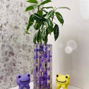 ☔️夜中に雨が降ってくれたみたいケロ🐸 🟣紫の舞 & 🌱斑入りやぶらんで 🏷️ 6日はカエルの日 🏷️ キャラクターピクルス 🏷️ カエル仲間 に参加します🎵 ♥️ 🐸💬みーつけた 💜 🐸