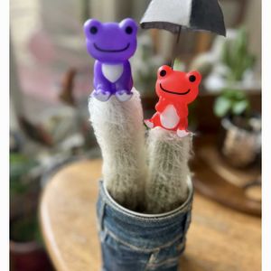 🏷️6日はカエルの日 可愛いピクルスちゃん みつけました ① 初恋草と ② モフモフのセロシアと ③ 先日のツボミが開きました クライミングサンパラソル🩷と ピクルスちゃん 高松駅のガチャでみつけました スイーツシリーズ どらやきにはさまってる😆 お気に入りの傘の目印に しました🌂 🏷️木曜モフモフ 🏷️木曜日は桃色 🏷️カエル仲間 🏷️キャラクターピクルス