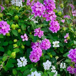 家のフェンスに絡ませて目隠し代わりに♪ まだほんの一角しか目隠しにはなってないけど、ピンクと白のお花が咲き乱れてます🥰