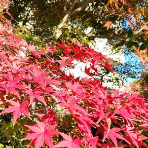おはようございます☺️ 職場近くの公園で 紅葉が綺麗です♪ 1 イロハモミジ 2 ハウチワカエデ 亀裂が浅く葉が大きい。 3 名前がわかりません‥ シダレモミジでいいのかしら。 細かい葉が陽の光を受けキラキラしてました😊