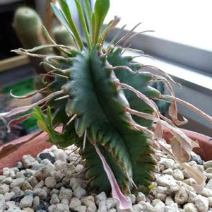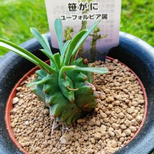 ユーフォルビアの笹ガニ。 今のおばけ👻みたいな姿もあとわずか? 子株がちょこちょこ出てきてます😊 しかし、去年の画像と比べるとずいぶん 変わってて、自分の記憶力のなさに😨 今シーズンはあまり日光が届かない場所に 置いてたので紅葉🍁も無し😅 実は頭のてっぺんにメス花💠が咲いてるんですが、 ペアになるオスがいないのが悩み😞🌀