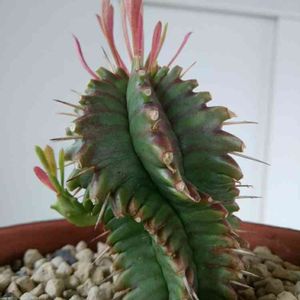 ユーフォルビアの笹ガニ。 外で太陽☀️と寒さに当たって 赤く、カニ🦀らしく👍 一年で今が一番好き😊 しかし、昨日からの寒波は少し心配です😓 笹ガニはこれ1つしかないので 念のため室内に入れるか。 オベサやサブローたちはまだ外😅 早くスペースをつくって避難させないと なんですが、なかなか・・・😥