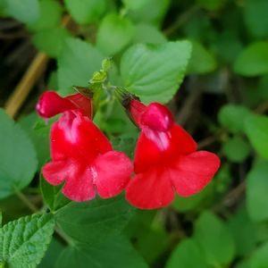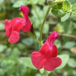うちのサルビア2種 1.サルビア ミッドナイト 1ヶ月ほど前に植えたばかり 大きくなってほしいなー 2.サルビア チェリーセージ ホットリップス こちらはもう10年くらい 発育旺盛でかなり荒く剪定しても大丈夫 花の色は赤になったり白になったりバイカラーにも