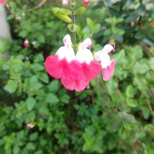 🍀サルビア セージ🍀 1日雨☔の予報が今は晴れ☀て生暖かくムシムシ〜 でも風が強くて写真を写すのに難儀しました。😅💦💦💦 ①サルビア・チェリーセンセーションだと思います。 挿し芽をもらったから名前は不確かです。 ②サルビア・コクシネア ピンクと赤しかなかったけど 限りなく白に近い子が咲きました。💕 ③チェリーセージ・ホットリップス 気温の変化で色が変わり 赤ばかりの花だったけど ようやく本来の紅白に。💕🤗🎶🎵 ④紫💜のガラニチカ・パープルスカイとチェリーセージ(品種?) ⑤ラベンダーセージ サルビア・インディゴスパイヤーズ