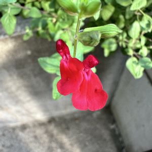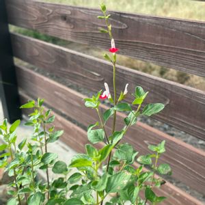 チェリーセージ ホットリップス 色が復活していました✨ けれど葉っぱがやられてる… 虫さんもコンニチハ…🐛 やめて…