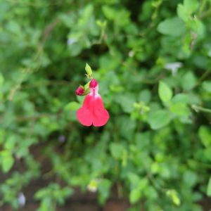 季節によってお花の色が変わるというチェリーセージです。お花自体少ないけど、今の時期は真っ赤!と思いきや、真っ白や、紅白のも1つ。お花も、あまりの暑さでおかしくなってるんですかね?