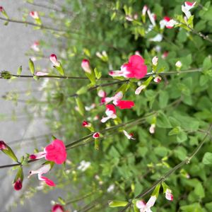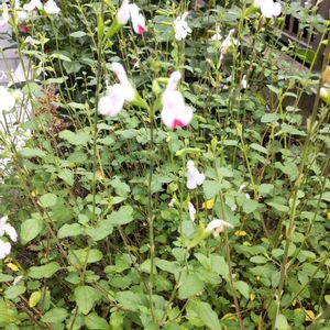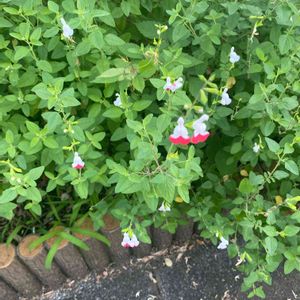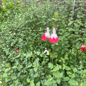 チェリーセージ ホットリップス 暑くなってきたので、白多めに咲くホットリップスさん。 今年はシマトネリコをかなり剪定して陽当たりが良くなって、沢山咲いてくれました。 梅雨に入ったらバッサリ散髪予定✂️