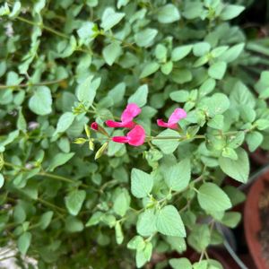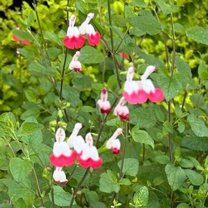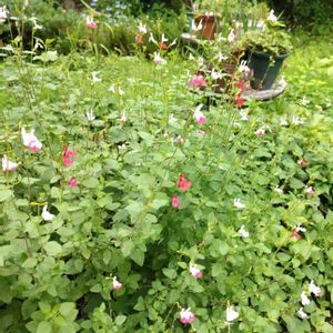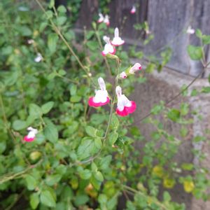 小さくて可愛い花がたくさん咲いていました ここで調べたらチェリーセージホットリップスとわかりました 可愛い💕