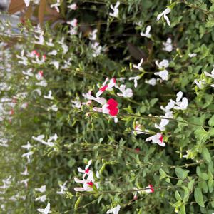 チェリーセージが咲き始めました✨ 最初は赤一色だったけど ここ何日か気温が下がりツートンカラーになってくれた様です❣️