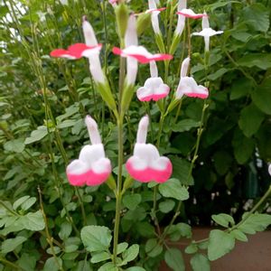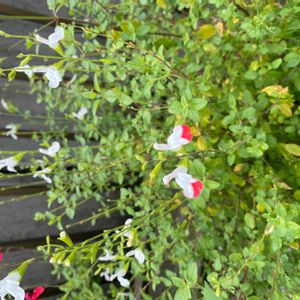 小花が咲きました✨ チェリーセージ ポットリップス ツゲ オリーブ