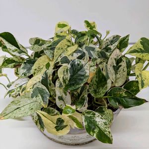 ポトスエクセレントで錦の日🏷参加します。 これも錦で良いのかなぁ。。(^^) この子、成長遅め。。 だけど少し伸びて垂れ下がって来ました。 もっと勢い良く伸びてくれないかなぁ。。 ポトスの仲間だけど、エンジョイより一回り小さい葉で細めだよ。 この子もグローバルと同じで、少しの期間だけ販売されたけど、直ぐに生産中止になり市場では中々手の入らない子です。 お日様に当てて育てると葉が白っぽくなり、室内で育てると黄緑色になるかなぁ。。 用土はネット購入しているストレスゼロを使っています。 この土中々良いよ、お勧めの土です🤗