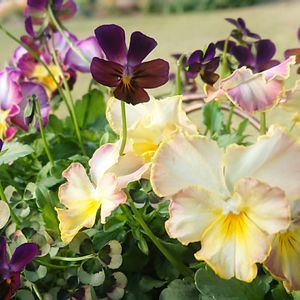 【ビオラ】 左『ヌーヴェルヴァーグ』 (写真撮るときこちらを向かせなかったぁ~😅アララ) 右 アンティークビオラ 『ファルファリア No.22』 (GSで、ナンバリングがあることを知りました💦全然気づかなかった~😅) 相変わらず素敵な 『ヌーヴェルヴァーグ』さん😍💓 花数増えてきたかな? 『ファルファリア』さんは中々お花のまとまりが付かないけど、upすることにしました😌 こちらも素敵なの😍💕 左後ろは切り戻したフリンジミニパンジーさんをDAISOのアイアン花瓶に生けてみました。(別売で2つで税抜き200円) ちなみに背景はDIYの残り物を立て掛けてるだけ🤭 ━雑談━ 『ファルファリア』の松原園芸のプログ見ていたら、銅葉(ダークチョコカラー)のプリムラの存在を知りました。渋色が好きな私は、プリムラを寄せ植えに使うには、ん~と、思っていたのです。それがこのプリムラなら!と目が輝いちゃいました🤭見つけたらお迎えしちゃうかも~😆💕 お名前『ジェシカ』ちゃんと言うらしい~😆❣️