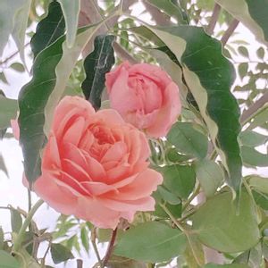 キャラメル アンティーク🌹 綺麗に咲いたけれど、今年の春に地植えにしたら……いい樹形だったのが、枝が枯れ込んで悲しい姿😢 ちょっと日陰過ぎたかな😞 鉢あげしようか💦