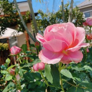 庭パト終了!おはようございます☺️ 他のバラが蕾でもキャラメルアンティークはモリモリ咲いてくれます🥰でも、 本来この子は黄色がかったアプリコットピンク色だったはず…GSのタグを辿って(こういう時すごい便利ですね!)他のお家の子達を見ても皆黄色…🤔??? 10年以上此処にいるので途中で気が変わったのかなぁ…(笑)何にせよ可愛いので気に入ってます!笑