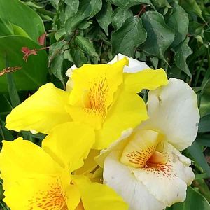 仕事帰りに、交差点近くの花壇に、カンナの花が、咲いていました。