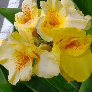 近くの街路樹の下に カンナの花が、元気よく咲いてます 💛カンナ(カンナ科カンナ属) 花言葉 情熱 快活💛 子供の頃 夏が来た、夏休みももうすぐだと嬉しかったなぁ〜