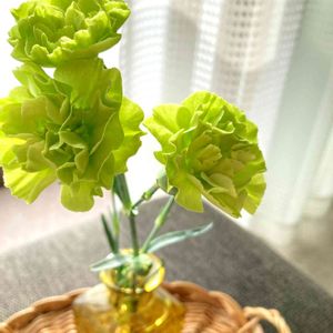 スーパーの生花コーナーの片隅で、1本だけ売れ残っている全て蕾のこの子を見た時…開花した姿が見たくて、思わず買ってきました😌鮮やかなグリーン💚うっとり…✨