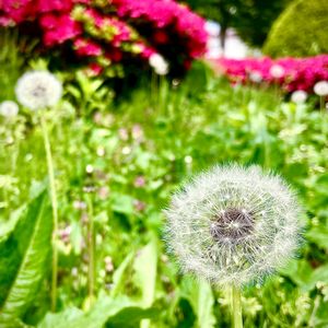 これから新しい地へ旅立とうとするたんぽぽさん🌼✨その後ろには例年より2週間ほど早い開花のツツジ🌺💕北海道の春は今、真っ盛り🍀ポカポカ陽気☀️で幸せ😌💗
