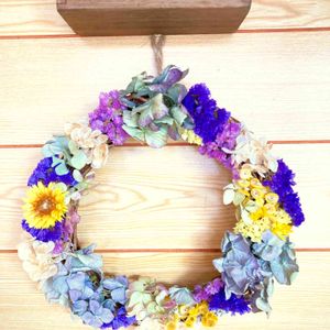材料費¥110リースです🌼DAISOさんからリース台を購入し、ドライフラワー達は同じように植物雑貨を作っている、娘のお世話になっている方から頂きました🤗💕✨