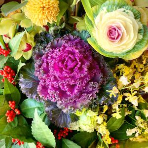 ランチ🍝でお邪魔したレストランの店先に飾ってあった葉牡丹のお正月飾り🌼店主の奥様が「もう3週間も経つのにまだまだ綺麗でしょ✨」と話してくれました😆🎶
