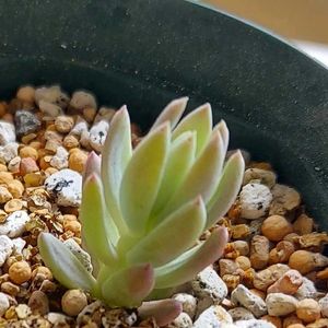 グラクトペタルムではないかと思ってる多肉ちゃん✨🌵✨ 肉厚でプクプクした葉っぱ。 グレーがかった葉っぱの中心には、ほんわかピンクが見える。 名前は分からないですが、絶やしたくない多肉ちゃんです😄💕