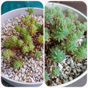 変化がわかりやすい2つ。 名前不詳のセダムさんと、リトープスのラテリチアさん。 セダムさんがモサモサになる日が楽しみです リトープスさんはこの成長で合っているのかわかりませんが、元気そうなのでよしとします