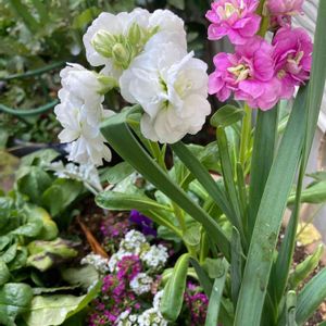 💜ストック(アブラナ科)和名アラセイトウ 赤紫のシックな色がお気に入り 昨年はピンクの花を永く楽しみ〜 今年は厳選2種 あと一色は〜❤️赤 さて、何と寄植えしたらいいかな〜