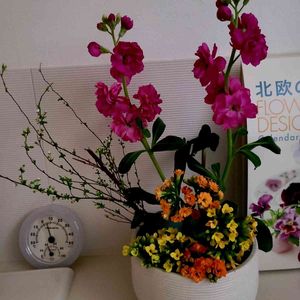 今年初の寄せ植えです🌸🌱 今月で旦那さんの転勤で お仕事辞められる同僚のために いつもは花束💐を送るところ お引越しが控えているだろうと 思い切って鉢植えのお花を贈ることに 気に入ってもらえるといいなぁ(*˘˘*)♡