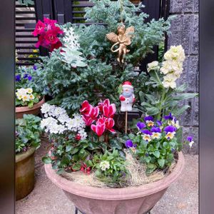 クリスマスの寄せ植えのゴールドクレストを鉢ごと抜いて、ストックとチェンジ❗️ お正月の寄せ植えにしました。 良いお年をお迎えください😊
